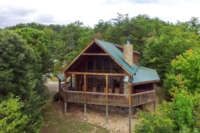 1 Bedroom 1 Bath Sleeps 4. This cabin is three story high featuring the following amenities private hot tub jacuzzi tub wi-fi cable and movie channels for every TV 55 inch flat. Step outside onto your private deck at night to see a breathtaking panorama of stars over the mountains and youll even be able to see the lights of Knoxville in the distance.